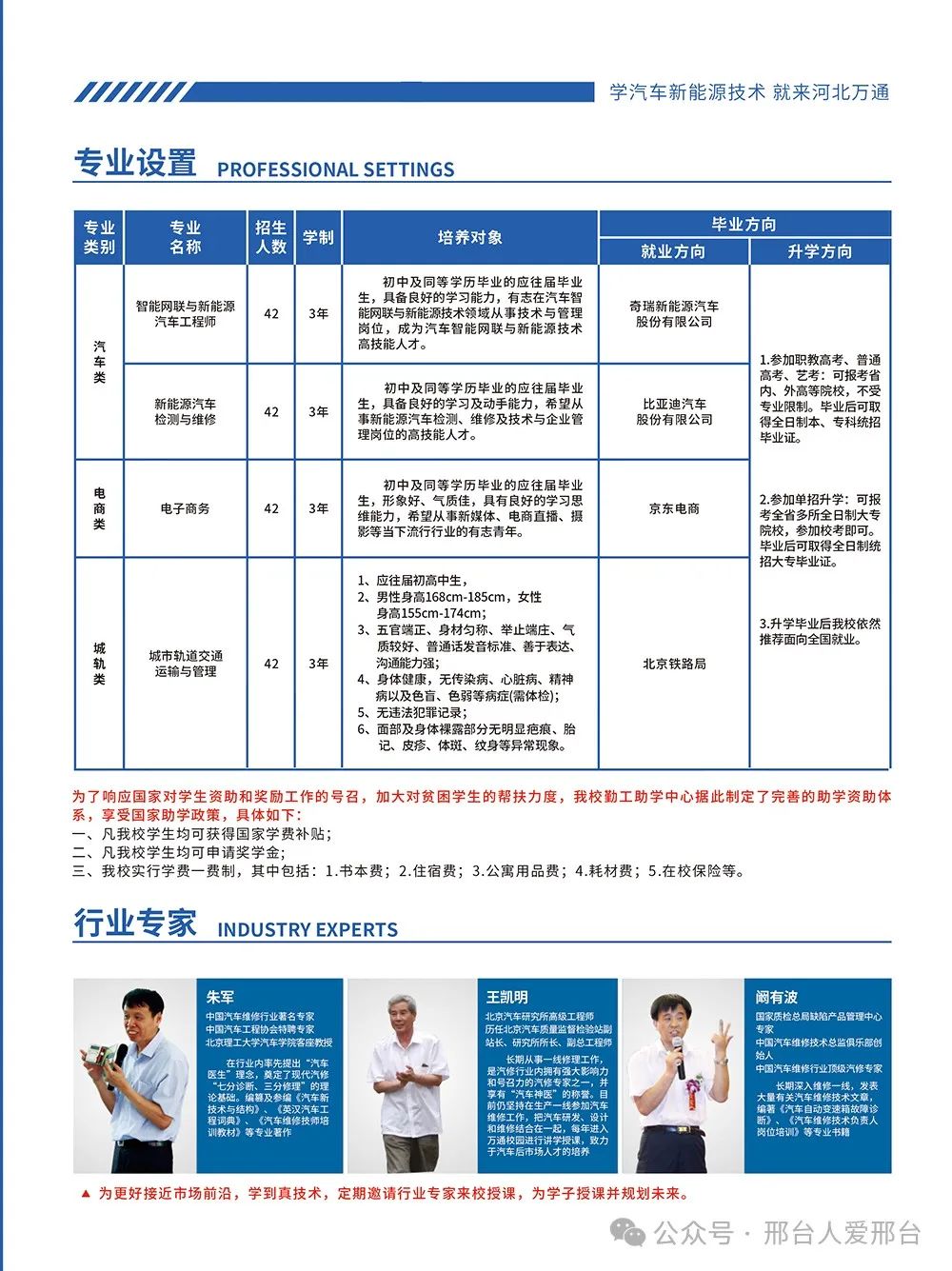 石家庄万通技工学校2026春季招生报名开始了!石家庄万通技工学校招生专业:新能源汽车技术、汽车美容 钣喷、形象设计、工业自动化、电工、PLC电气自动化、焊接技术。